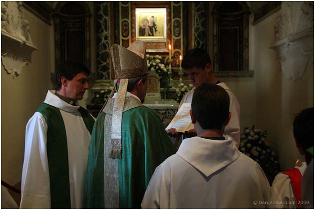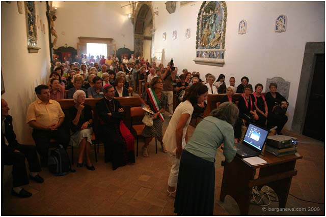 The Bishop of Pisa, Giovanni Paolo Benotto was there to celebrate mass before the painting was revealed to the waiting faithful. There then followed a presentation of the work by Dott.sa Antonia d’Aniello and the restorer Chiara Carrara.