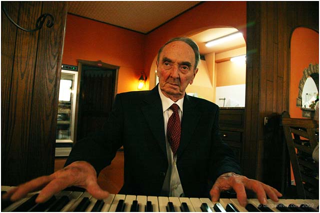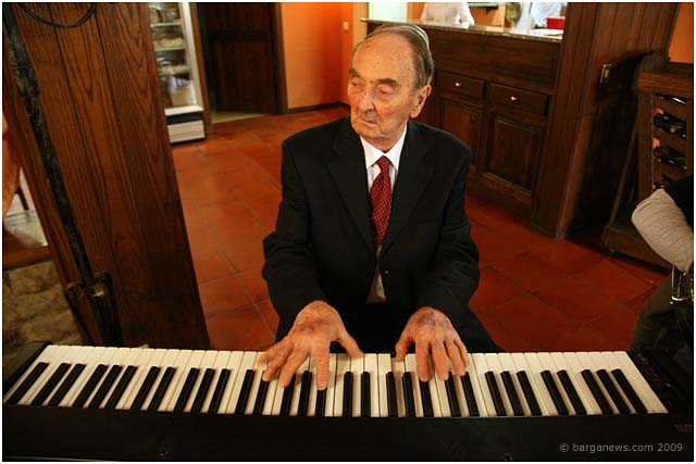 AT 4 pm Aristo and his guests were still seated in the restaurant after a gargantuan feast and just about to enjoy the final treat – the cake baked specially for the occasion when in walked the last surprise of the day – the musicians Alessandro Rizardi and Fabio Guazzelli carrying their own instruments – guitar and mandolin and a keyboard for Aristo. Two minutes later the keyboard was plugged in and Aristo was doing his stuff for all present in the restaurant.