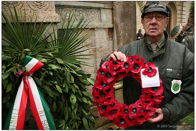 This morning, torrential rain did not stop the ceremony taking place as the Alpini raised the flag and placed two wreathes on the monument. One from the Comune of Barga and the other, a wreath of poppies from twinning friends in Preston, Seton and Gosford, East Lothian, Scotland.
