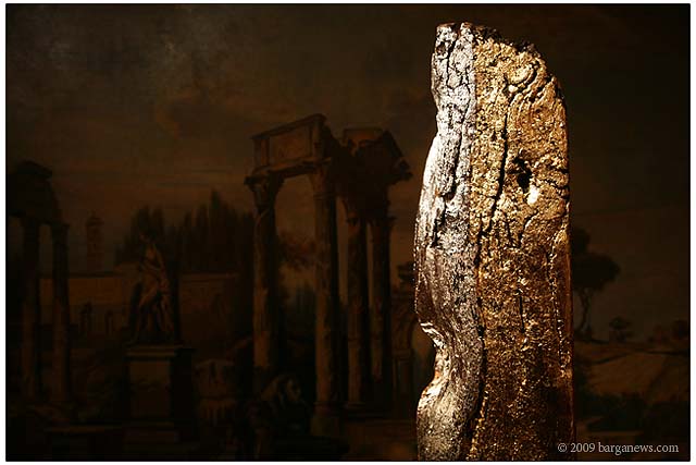 Apart from the fine aesthetic of the objects, Marco also brought into play the concepts of the passage of time, decay, ageing and the eventually disintegration of all things- as this wood without a doubt dated back probably more than 100 or even 150 years but for now it looks as though time has stopped under that gold and silver patina.