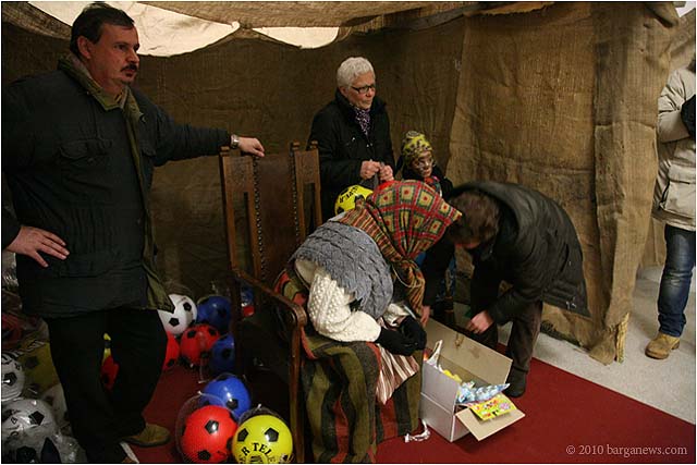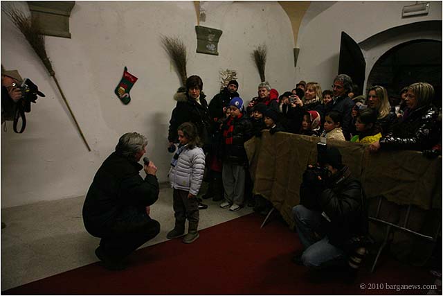 Once again the weather stepped in at the last moment and changed all those well made plans. There is snow on the ground but the Befana unfortunately had to arrive in Barga Vecchia this afternoon in a mixture of rain clouds, mist, fog and drizzle. All in all, not very joyous occasion but the organisers of the event deftly changed foot, change direction and moved the event out of Piazza Angelio and the non-existent bonfire and instead moved everything inside in what used to be the Scottish Museum.