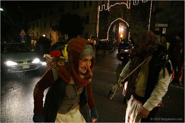 Well as we have already said in an earlier article, the weather once again made itself felt as the Befana unfortunately arrived in Barga in a mixture of rain clouds, mist, fog and drizzle. All in all, not very joyous occasion but the organisers of the event deftly changed foot, change direction and moved the event out of Piazza Angelio and the non-existent bonfire and instead moved everything inside in what used to be the Scottish Museum. All eyes were then on the weather forecast for the evening when the Befanotti come down from the mountains for their traditional meeting and singing in Barga Vecchia …. did it happen?