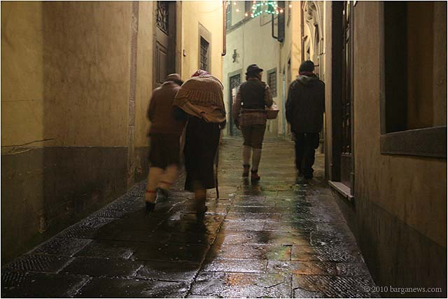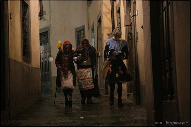 Well as we have already said in an earlier article, the weather once again made itself felt as the Befana unfortunately arrived in Barga in a mixture of rain clouds, mist, fog and drizzle. All in all, not very joyous occasion but the organisers of the event deftly changed foot, change direction and moved the event out of Piazza Angelio and the non-existent bonfire and instead moved everything inside in what used to be the Scottish Museum. All eyes were then on the weather forecast for the evening when the Befanotti come down from the mountains for their traditional meeting and singing in Barga Vecchia …. did it happen?