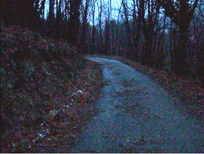So I wearily put on something warm and go to the car park. Soon Froggie and I are rolling slowly down the red road into the inky-black soaking-wet canyon that is the Turritecava valley. Mandy had said the landslide was just below Sandra’s restaurant and that the road had already been cleared, but that there was a huge threat of another which is why they were closing the road. Halfway down, it occurs to me that driving the car directly through the fallout zone of an unstable landslide is er.. well, slightly dangerous. As I hurriedly motor past the Valsozza bridge, Froggie’s headlights pick out a confused mass of mud and smashed tree trunks shovelled off the road line, and a minute later, I’m down. I park on the main road somewhere since Fabbriche is full, and then I realize that, as always, the worst part of the evening is yet to come, since I’ve forgotten to bring a torch and I need to walk three km back up an incredibly steep hill, in the pitch dark, under a landslide, drunk, while being rained on. Isn’t this just the best Christmas ever? Five minutes later I hurriedly pass the landslide gazing upwards through the drizzle into the threatening black void. A couple of eery red warning lamps and a bit of moonlight is all the illumination I have, and it ain’t enough to see what happened, but there is – at least in my imagination – a palpable sense of menace.. All the way up there’s nothing on my left but gigantic nearly vertical slopes with water streaming off them, and it’s at times like this, that I really begin to regret reading all those climbing books which end with the climber getting his head smashed in by falling rocks.