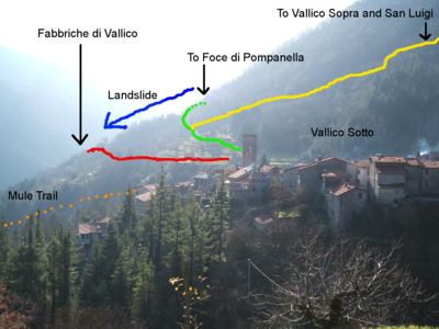 So we’re cut off. Vallico Sotto is isolated from the rest of humanity by the biggest damned landslide you ever saw. See this hundred-foot-deep three-hundred-foot-wide mile-long hole? That was a road I walked over just the day before.
