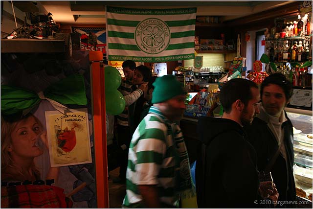 After a meeting in Palazzo Pancrazi with the L’assessore allo sport, Gabriele Giovanetti, the supporters then moved on to a guided tour of the city before moving back to the main hub of all this Celtic energy – Paolo Gas’s bar on the Fosso. This evening, they will move next door into the Trattoria da Riccardo for the cena sociale.