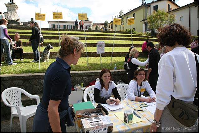 The grassed area above the car park just outside Barga Vecchia, known as Il Fosso, was transformed this afternoon into a beauty salon and models catwalk ( maybe not a good choice of words) for the first-ever dog show organised in Barga for our four footed friends by the animal rights Association “L’ Arca della Valle”, Polisportiva Val di Lago, l’Associazione per B.A.R.G.A and the Comune of Barga.