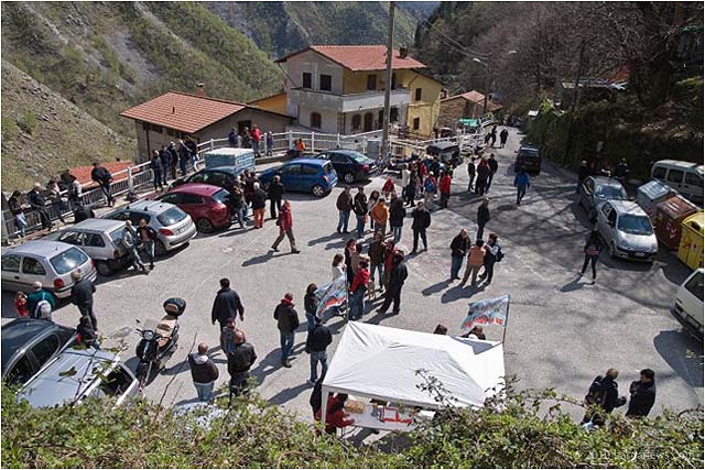 Nonostante la temperatura non fosse proprio primaverile più di un centinaio di persone si sono portate verso la casa del fondo per dare il loro contributo in termini di presenza alla manifestazione.