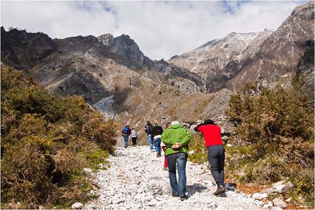Bella giornata dedicata alla montagna…sulle Alpi Apuane, sotto il monte Tambura. La prima manifestazione pubblica del “NO AL TRAFORO DEL MONTE TAMBURA” Da li si vede il nastro sinuoso che traccia la via del valico; la Via Vandelli che unisce Resceto a Vagli tratto della via ideata e realizzata tra il 1738 e il 1752 su iniziativa del duca Francesco III di Modena. Suo scopo era collegare le città di Modena a Massa attraversando l’Appennino Tosco-Emiliano e le Alpi Apuane rispettivamente dal passo di San Pellegrino e da quello della Tambura.