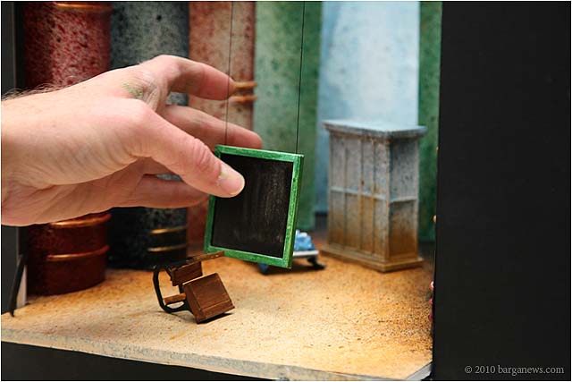 This morning the scene e costumi designer, Stuart James had arrived from the UK and was already hard at work.