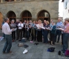 The Saint Martin’s Singers – a choir from the South of England were in Barga Vecchia this afternoon for a short informal concert in the piazza. The 25 members of the choir sang to a compact but interested audience at the L’osteria including the Mayor of Hayange, France, who is here on an official visit to Barga.