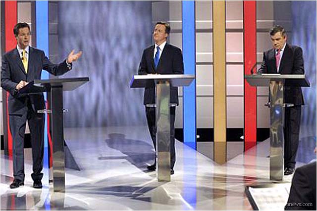 Mainstream political analysts agree with the bookies. A survey released Monday (April 19) by the authoritative YouGov research firm has the darkhorse Lib Dems, as Britons call them, supported by 33 percent of registered voters, with the Conservatives at 32 percent and ruling Labour sagging to 26 percent.