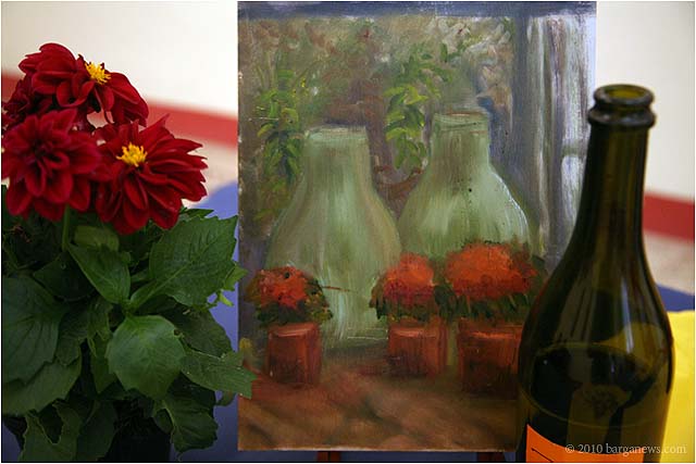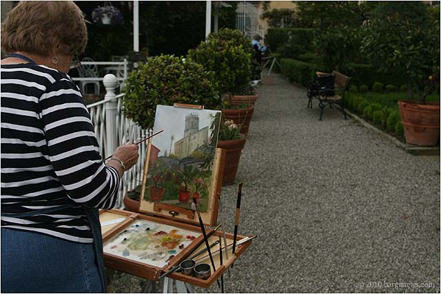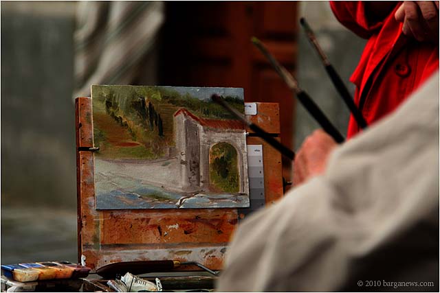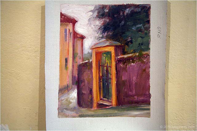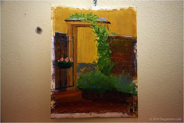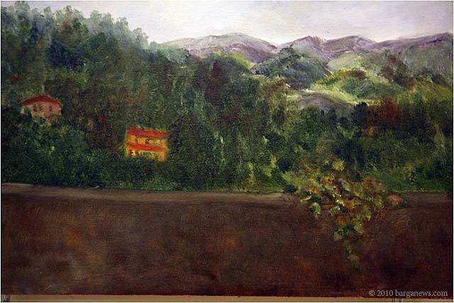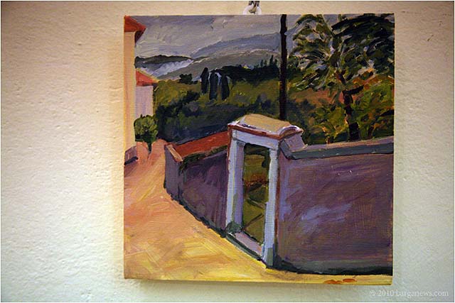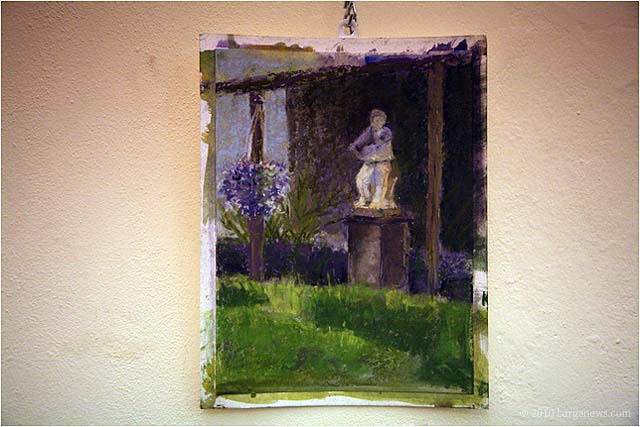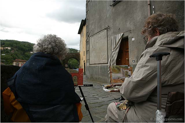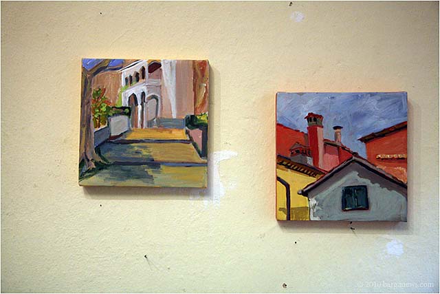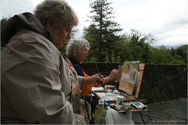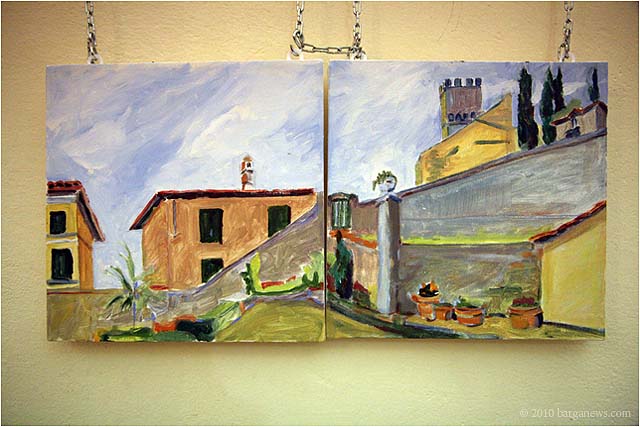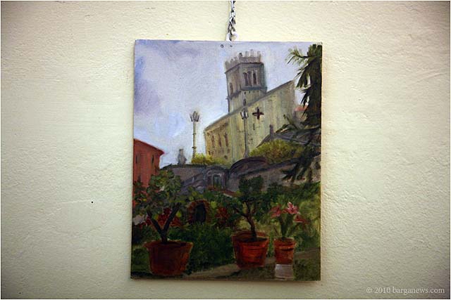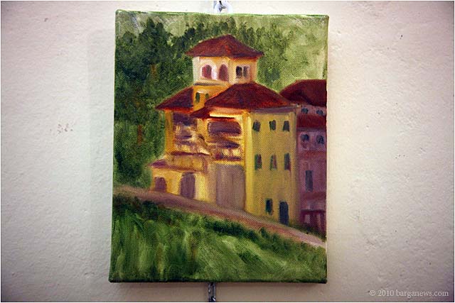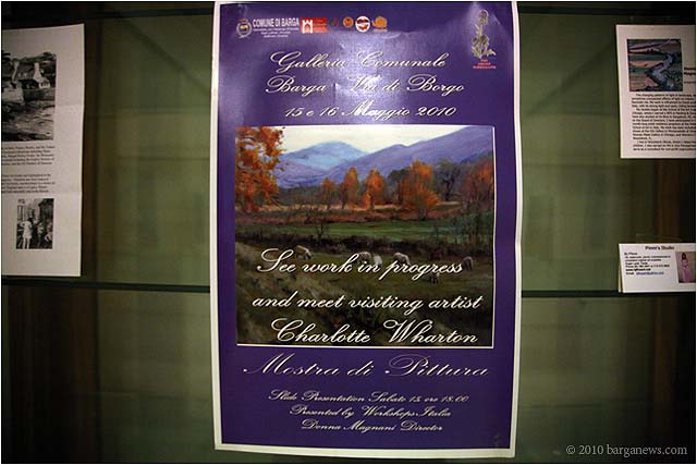 Charlotte Wharton from Worcester, Massachusetts has been conducting a painting workshop all this week in Barga. Today the artists taking part in the workshop exhibited their work in the Galleria Comunale. From the groups’s site we read: ” artists of all levels working in oils, acrylics, and pastels will gain inspiration from the breathtaking views and extraordinary light quality. Plein air painting classes will be held in the morning. Afternoons will be devoted to working independently. Individual and group critiques will be offered.Nationally known painter and instructor Charlotte Wharton will help participants interpret the rhythms of nature and further their own voice. Charlotte will include and go beyond the standard elements of design to cover the interpretation of the inherent energy of linear directives, shape, value, color, using the Language of Artistic Energy and the Munsell Color System.”