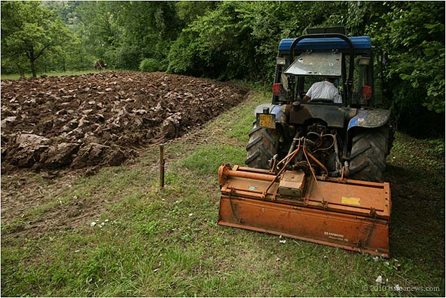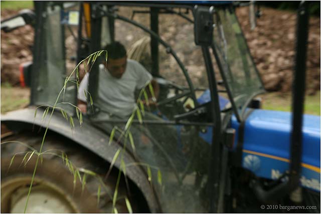 We tried getting the small tractor of Paolo Lazzarini with a load of compost onto the bottom field and failed miserably as the ground was just too waterlogged, stopping the tractor in its tracks.