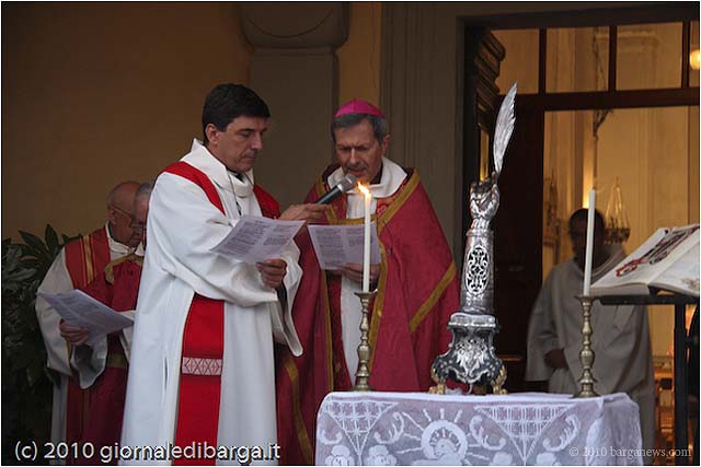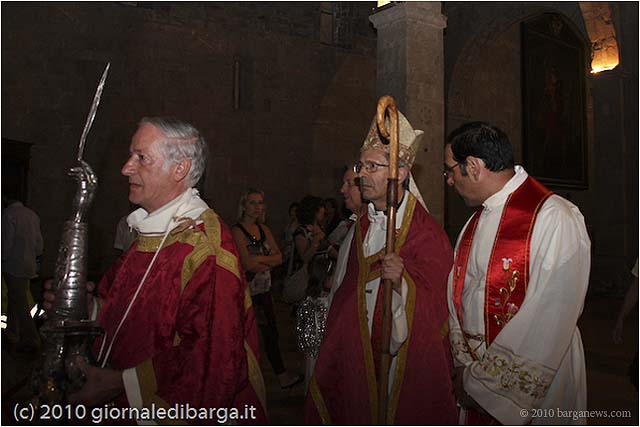 Thousands of people lined the streets of Barga watched the procession led by Arcivescovo di Pisa mons. Giovanni Paolo Benotto as it slowly wound its way through the streets of Barga Giardino and then up into Barga Vecchia for the final destination – the blessing of San Cristoforo in the Duomo.