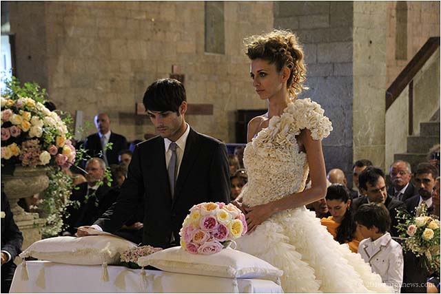 Vaina has appeared on barganews many times over the past decade. Barga born and bred but has spent most of her working life working in the fashion industry far way from the city she loves. She was Giorgio Armani’s favourite model for many years. Alessandro’s video work has also appeared a number of times on these pages. They are both back on the site again today but for an entirely different reason. In front of a large crowd in the Duomo at 4.30 this afternoon the pair became man and wife.