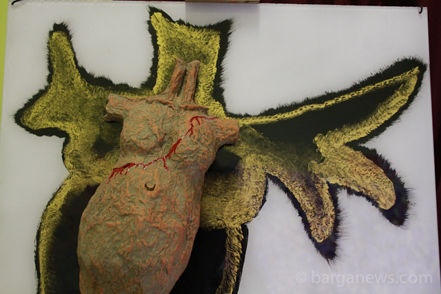 Rosalba Maccianti, originally from Piedmont but has been living and working in this area for some time (last exhibition in Barga was in 2007 – article here) Sergio Fini is from Fornaci di Barga and has featured many times on barganews – both for his paintings and poetry and his continuing work with the theatre group Papalagi (article here) – Sergio’s website is here. Both artists are here in Barga this week exhibiting their last creations along with some of the students who have been studying with them in the studio in Fornaci di Barga – Miria Biagioni, Mirko Carpita, Marco Casci and Maria Togneri.