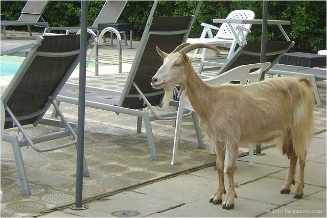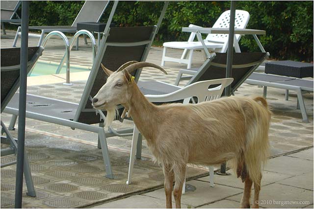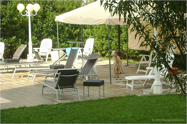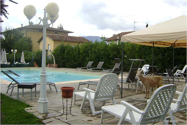 Its almost the end of August and very close to the end of the “silly season” as far as journalism is concerned but who could resist a headline to a story like, ” Goat visits the swimming pool” ? A goat strayed into the gardens of the Hotel Villa Moorings in Barga Giardino and decided that by the pool was the coolest place to be on a warm summer day. The arrival of various armed Carabinieri, the odd veterinary surgeon and officials from the local health authority all did nothing to change the mind of the sunbathing goat until later on in the morning the late entrance into the Villa of the owners of the goat finally persuaded the animal that enough was enough and it was time to return home.