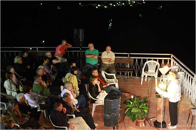 For the first half of the evening, Graziella Cosimini recited verses from the poet Giovanni Pascoli and the soprano Sally Li sang a selection of arias, and songs from Gershwin and Andrew Lloyd Webber. For the second half, the street lights were switched off and all heads turned up to watch the stars above. On cue the clouds, which had been covering most of the sky up until then , magically parted to reveal the night sky with most of the constellations perfectly set out above their heads for all to see. Luckily there was the ever erudite prof. Talini on the terrace to give those with patchy knowledge of the stars a helping hand in deciphering the glittering display.