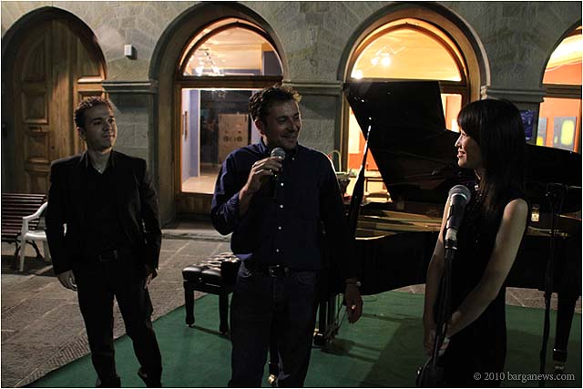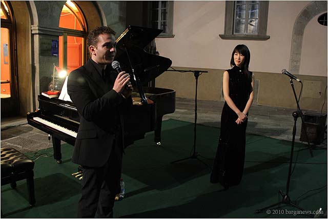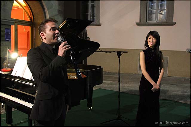 A concert for the tail end of the summer season was held this evening in Piazza Angelio in Barga Vecchia with a large crowd sitting down to eat a meal in the piazza courtesy of Riccardo Negri at the L’osteria and to listen and watch two of Barga’s finest classical musicians – Massimo Salotti from Fornaci di Barga on pianoforte and the soprano Sally Li. Trained in her native China and the United Kingdom, Ms. Li is an accomplished coloratura soprano, with the unusual vocal range and agility necessary to master opera’s most demanding roles.