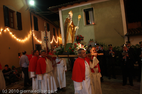 Si sono aperti ieri sera a Catagnana i tradizionali festeggiamenti in onore del patrono della piccola frazione di Barga, San Regolo. Come ogni due anni si è tenuta la bella processione dove la statua del santo è stata portata in corteo lungo le strade del paese. A condurre la processione il proposto di Barga, don Stefano Serafini, accompagnato dai fedeli e dalle compagnie delle chiese di Barga – a cominciare da quella di Catagnana con i suoi colori giallo-verdi, che sono i colori di Catagana e della sua bandiera -, oltre che dal labaro e dai rappresentanti del comune, con in testa l’assessore catagnanese Gabriele Giovannetti e dalla banda “Gaetano Luporini” di Barga.