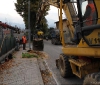 This afternoon work started on cutting down eight of the Lime trees lining both sides of the narrow Via Funai. The trees which have stood for more than a century are being cut down to make space for a number of passing places so that traffic can pass in both directions.