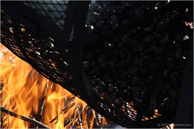 She was at home this weekend in her wooden house up on the mountainside above Barga at Pegnana. Along with her were numerous helpers who were there to keep the fires going for roasting this year’s chestnuts, heating the cotte for necci* and warming the red wine -- the Vin brulé for the many visitors to her house.