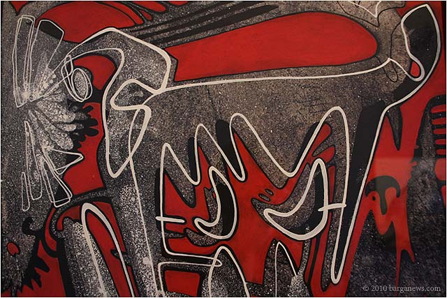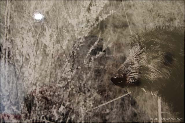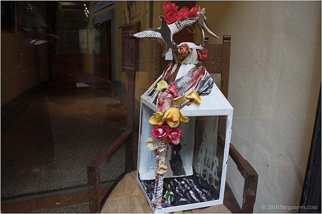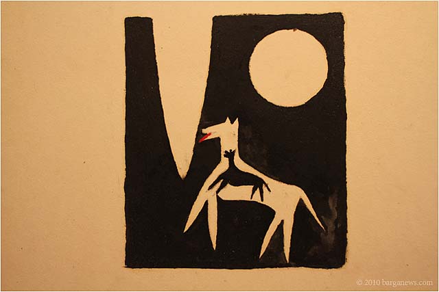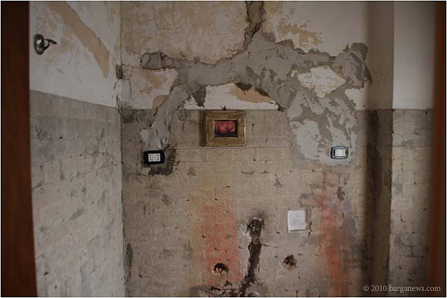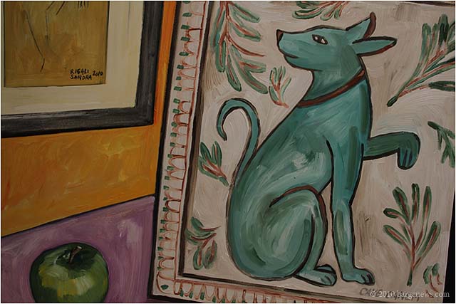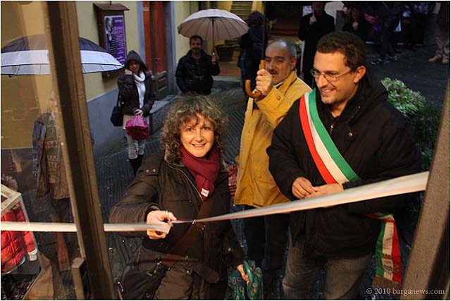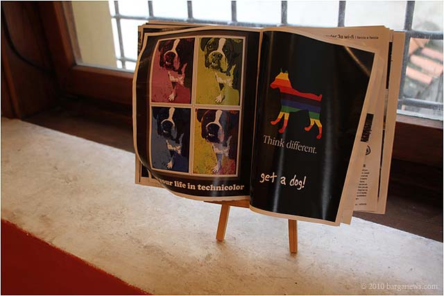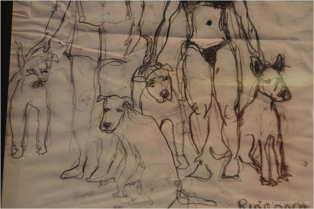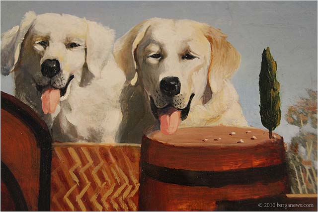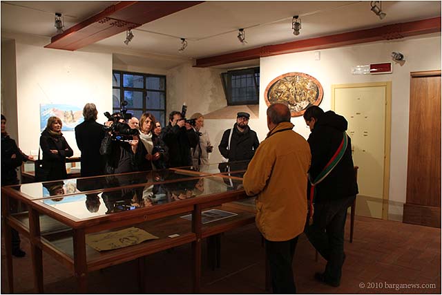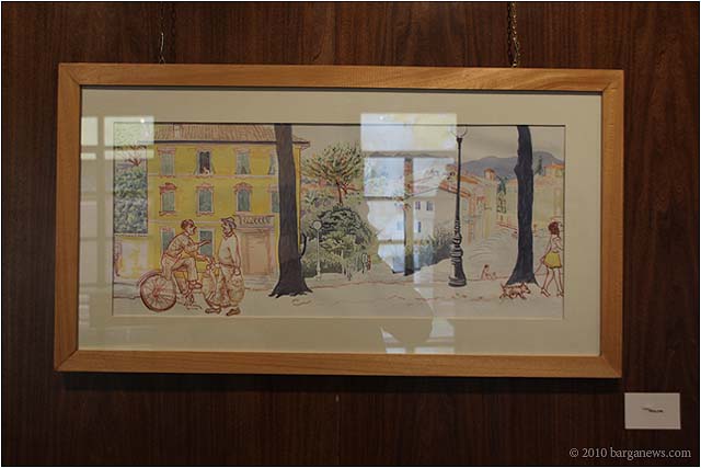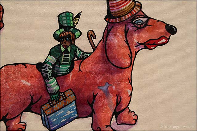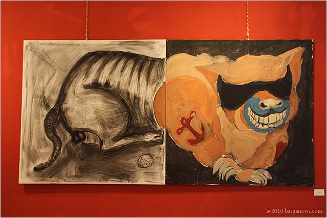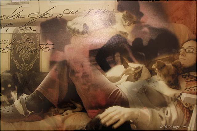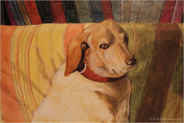 When 73 artists join forces to present nearly 100 paintings, sculptures, videos and poems on a single theme, the result can’t really be called something as limited as a mostra (“exhibition”). It’s more in the nature of an encyclopaedic survey. In the case of Cave Canem, the event that opened in three Barga venues November 1, the encyclopedia’s sweep covers virtually everything known, suspected or fantasized about dogs – mostly, but not exclusively, in their relations to human beings.