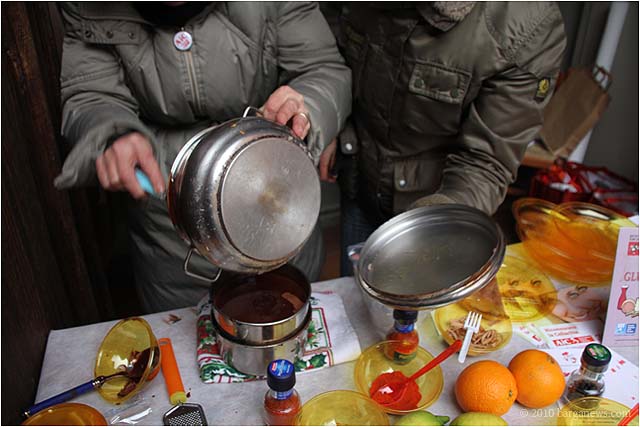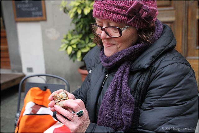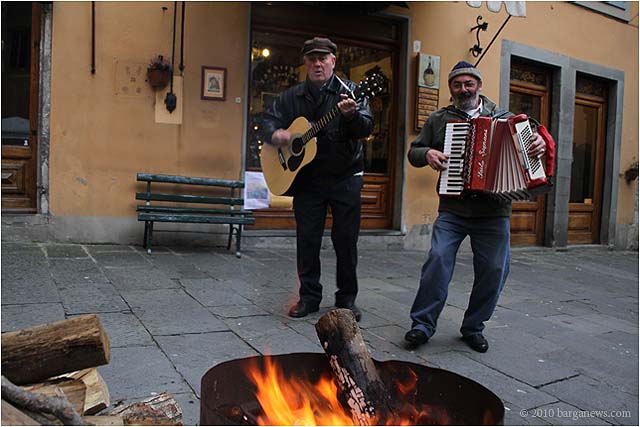 Barga Cioccolata has been plagued over the years by bad weather disrupting the celebrations. This year according to all weather predictions it was going to be another difficult event with heavy snow fall predicted on one hand or rain on the other. What actually happened was neither but it was a close thing. The cold weather on Saturday repeated itself the following day but the organisers had a card up their sleeves – first thing Sunday morning they set up in each piazza a wood fire to keep the visitors warm as they moved thorough Barga Vecchia and the rain kept away until most of the visitors to Barga had returned to their houses.