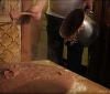 It has to be said that it is not a pretty looking dish but the combination of highly salted bones and sweet chestnut is something to be savoured. Added to that as a kind of side dish is the the omelette with pork sausage. Make sure you don’t miss the the interesting use of a chair on its side as a table in some of the images