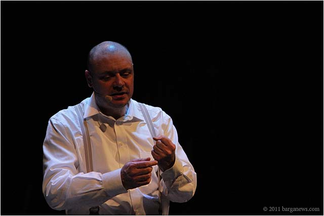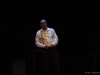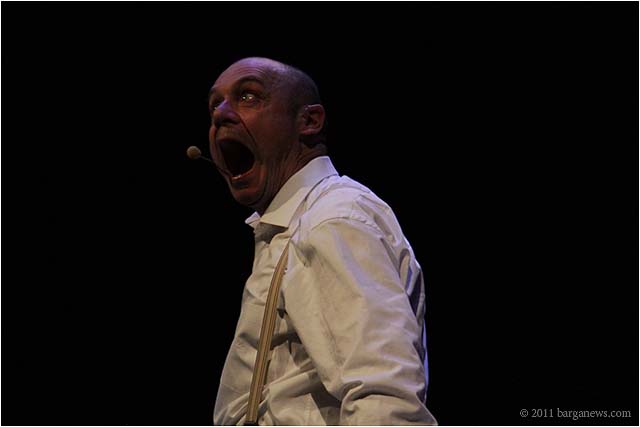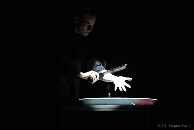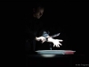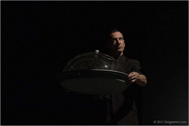 LEONARDO MANERA – ITALIAN BEAUTY – Viaggio in un paese di mostri di e con Leonardo Manera, regia di Marco Rampoldi con la partecipazione dell’illusionista Walter Maffei Sinossi – Un viaggio. L’ultima tappa di un viaggio e il racconto di quel viaggio, seduto al tavolo di un ristorante posto proprio alle spalle di un porto, di un aeroporto, forse di una stazione. Insomma, un luogo (o un non luogo) ideale per partire, forse per sempre, comunque in ritardo. Niente di strano, se non perché la cena arriva al termine di un viaggio non attraverso l’Italia, ma attraverso le meravigliose mostruosità d’Italia. Le portate della cena, poi, descritte magicamente da un cameriere vagamente inquietante, non sono manicaretti preparati in cucina ma personaggi che di quell’Italia mostruosa fanno parte, anzi, ne sono la compiuta espressione: un politico presuntuoso e arrogante, un improvvisato promotore finanziario, un professore corroso dall’ignoranza degli alunni (e propria), un presentatore di quiz cannibale. Così il protagonista si ritrova a raccontare la sua decisione di partire, di abbandonare con grottesca amarezza il noto dell’Italia per l’ignoto di qualcos’altro, spinto anche dalle parole di un ex amore ormai giunto al capolinea. Un amore che finisce e un’Italia che continua sempre uguale, dominata da bipedi con fattezze umane, ma bestiali e tragicamente invidiati. Quindi la partenza definitiva, verso un mondo nuovo che lascia finalmente spazio alle emozioni e non agli stereotipi delle emozioni, allo stupore della vita e non all’imitazione della vita. Senza rimpiangere nulla, nemmeno il posticipo della domenica sera in tv.