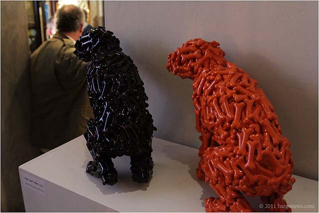 The Cave Canem “Beware of the Dog”exhibition started off last year as just a small exhibition of 12 artists in Lorenzana Pisa (article here) It was so popular that other artists wanted to join in with their work and so another opening was held, this time for 30 artists. It then came to Barga where another 40 artist joined in presenting nearly 100 paintings, sculptures, videos and poems on a single theme. As Frank Viviano wrote in his article, the result can’t really be called something as limited as a mostra (“exhibition”). It’s more in the nature of an encyclopaedic survey. In the case of Cave Canem, the event that opened in three Barga venues, the encyclopedia’s sweep covers virtually everything known, suspected or fantasized about dogs – mostly, but not exclusively, in their relations to human beings.