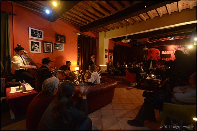 Venerdì 11 marzo alle ore 21,30 il bargajazz club ospiterà la musica swing del gruppo barghigiano “Emma & gli Aristodemos” (Emma Morton – voce, Fabio Guazzelli – chitarra, Alessandro Rizzardi – sax/mandolino, Leonardo Gnesi – contrabbasso, Keane – percussioni).
