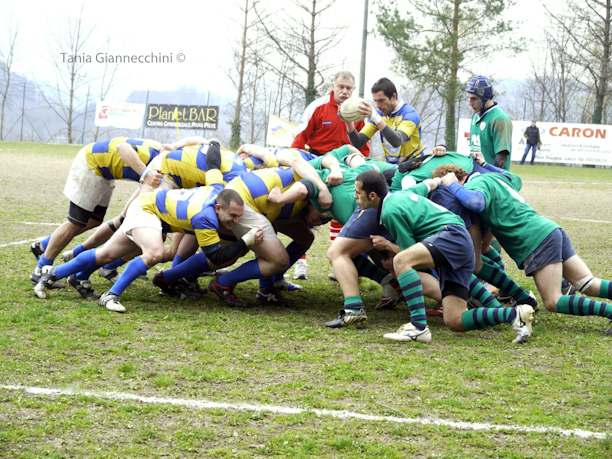 La partita inizia subito bene per il Garfagnana che al tredicesimo realizza una punizione da 3 punti firmata Lorenzo Morini. Quest’oggi la squadra è lucida, il gioco è veloce e più preciso, sfortunatamente però arriva il pareggio al ventitreesimo grazie ancora ad un calcio piazzato. Il punteggio è di 3 a 10 quando al trentesimo del primo tempo gli ospiti riescono a realizzare e trasformare la loro prima meta. I gialloblù continuano a lottare e giocano a ritmo costante senza demoralizzarsi nemmeno di fronte alla seconda meta subita al cinque minuti dall’intervallo.