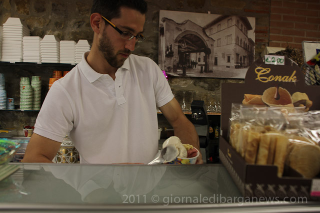 This afternoon yet more gluten free food was on offer at the Gelateria in Barga Vecchia. Of the 20 different ice creams on sale, all but two were gluten free.