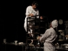 The smells that were gradually filling the theatre were real smells of delicious cakes. This disjointed reality break was kept up and manipulated as the show went on with the two calling for prompts for the wings after apparently losing their lines and kicking malfunctioning lights. All were prepared in advance and expertly timed to perfection to bring the audience onto their side and part of the spectacle.