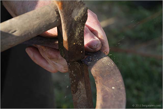 Most people when asked to describe how a sickle is sharpened, would mention using a stone to bring back the blunted edge but in fact the tool which was used most often was not a wetting stone but in fact a flat ended hammer.