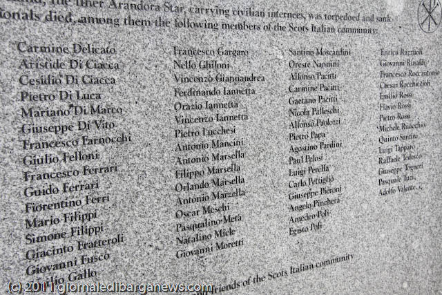 Tantissimi, dicevamo, i presenti alla cerimonia tra i quali spiccava in particolare la presenza dell’unico sopravvissuto ancora in vita dell’Arandora Star, Rando Bertoia. Ma ci ha fatto piacere vedere anche tanti amici di Barga a cominciare dal’ex sindaco di Glasgow Alex Mosson, dal grande artista scozzese John Bellany, per finire con i tanti bargo-scozzesi come Aldo Cecchini, Mauro Cecchini, Allan Toti, Michael Lemetti, Roberto Marchetti e tantissimi altri insieme a loro. Anche da Barga e dalla Valle del Serchio è stata numerosa la presenza alla cerimonia.
