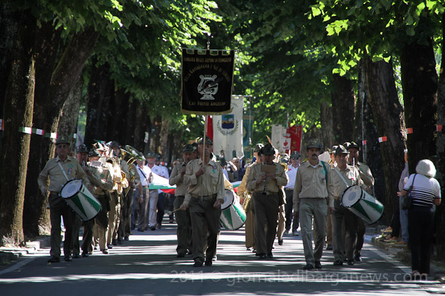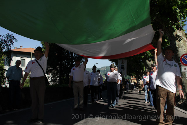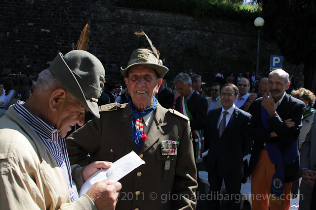 A full parade including marching bands, mules and many hundreds of Alpini left Barga Giardino and made their way up through the town, around the castle walls and finishing up at the Fosso where speeches and presentations were made under the gaze of the statue of Antonio Mordini.