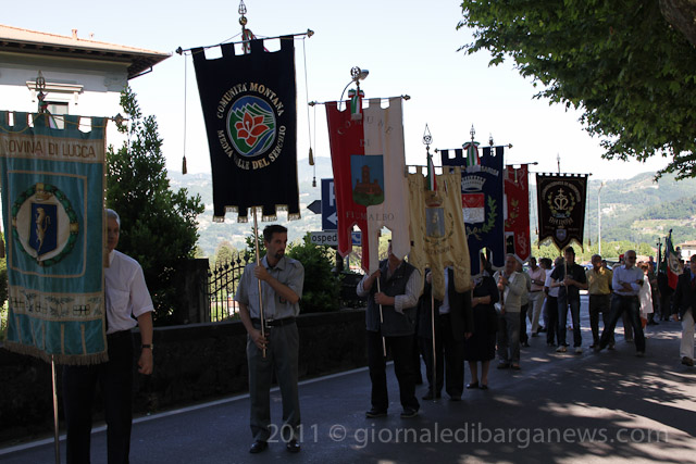 Giunti sul piazzale del Fosso non sono mancati i saluti, anche commossi, da parte di Antonio Nardini, segretario del gruppo di Barga, del Sindaco Bonini, di Mario Regoli e Andrea Marcucci, di Fabrizio Balleri, in rappresentante del coordinamento regionale e del Viceprefetto di Lucca Giuseppe Guetta.