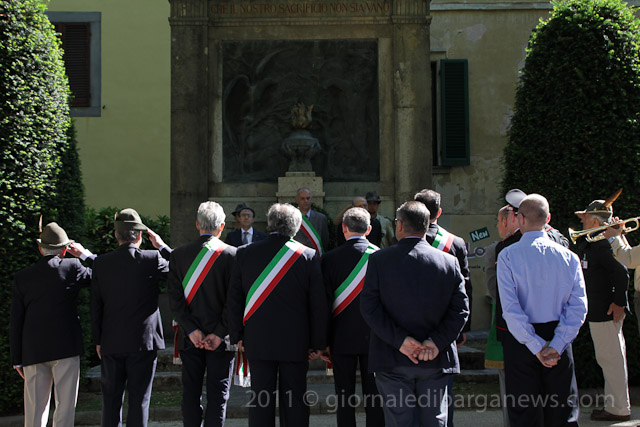 Le celebrazioni hanno preso inizio nella mattinata con un grande raduno al Giardino che poi si è snodato in una parata verso il Piazzale del Fosso, accompagnato da fanfare e cori alpini e dai gonfaloni e dai rappresentanti dei comuni della zona; a loro fianco anche le autorità militari e religiose.