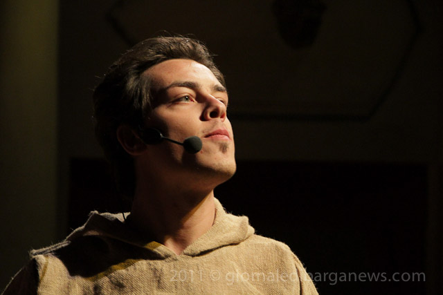 Realizzare una pièce sulla vita di San Francesco ha creato non pochi problemi dal punto di vista scenografico in quanto dovevano essere realizzati vari ambienti (la città, la missione del Santo a Gerusalemme durante le crociate, l’ambiente misero dei poveri e dei sofferenti e quello ricco e sfarzoso dei notabili del tempo, ecc.).