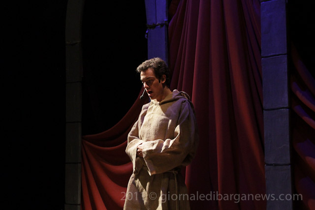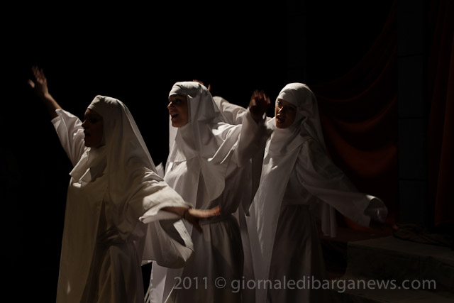 Si è ottenuto un effetto scenografico semplice ma buono che permette, soprattutto nei balli di gruppo, a tutti gli interpreti di posizionarsi a vari livelli. Il taglio dato alla commedia è piuttosto moderno, la stessa interpretazione del giovane che interpreta il Santo è da valutarsi sotto questa ottica. Tutti i cantanti solisti cantano dal vivo.
