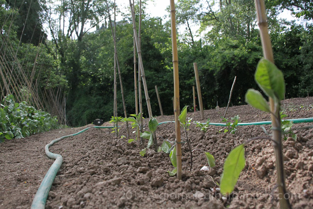 Alla fine quindi sono tornato ai vecchi metodi ed ho tagliato i rami più sottili degli alberi intorno all’orto e li ho usati per coprire le piantine di pomodoro.