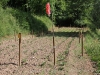 The potato plants were left to cope on their own … just too many to cover up and the tiny shoots just poking through the soil that must be the new maize, looks defenceless but once again just too many to deal with.