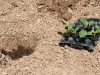 Gli zucchini ed il basilico appena piantati sono sati coperti con cassette di plastica, tenute poi ferme con sassi.
