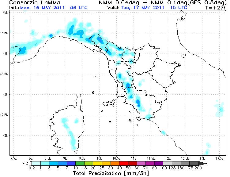 Martedì 17 maggio: cielo sereno al mattino con tendenza ad aumento della nuvolosità cumuliforme nel pomeriggio con qualche possibile precipitazione isolata (vedi foto). Miglioramento in serata. Temperature del primo mattino e serali ancora molto fresche, massime miti superiori ai 20/21 gradi. Venti deboli
