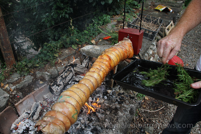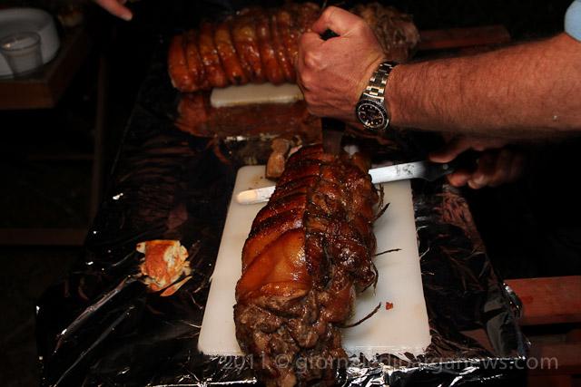 The main star of the party was without a doubt, the traditional pig roast. The roasting over a wood fire took three hours with some sophisticated equipment turning the pig at a constant speed. Luckily there were many experts on hand to give advice and consultation on all subjects pertaining to pig roasting from the time needed, the type of wood needed and type of fire.