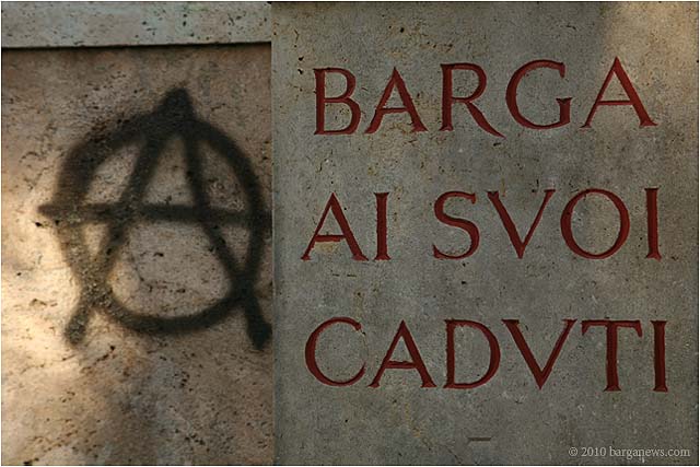 I graffiti apparsi a Barga negli ultimi 10 anni mostrano il graduale arrivo dello stencil con un primo esempio sul muro esterno dello stadio nel 2007; un’altra versione più recente è invece impressa sulla parete dei bagni pubblici.