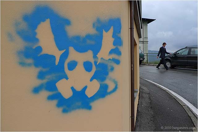 Over the past weekend a new topic of conversation has broken out in the city regarding an image which appeared on the wall of the Project Giovanni on the main road going up from Barga Giardini to Barga Vecchia.